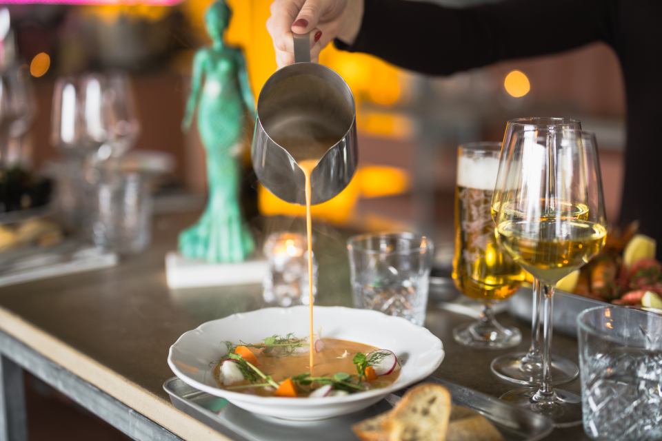 Vi erbjuder en levande meny med blandade klassiker som fisk- & skaldjurssoppa, dagens fångst, musslor & räksmörgås. Tillsammans med våra gäster skapar vi en härlig miljö där fisk & skaldjur står i centrum.